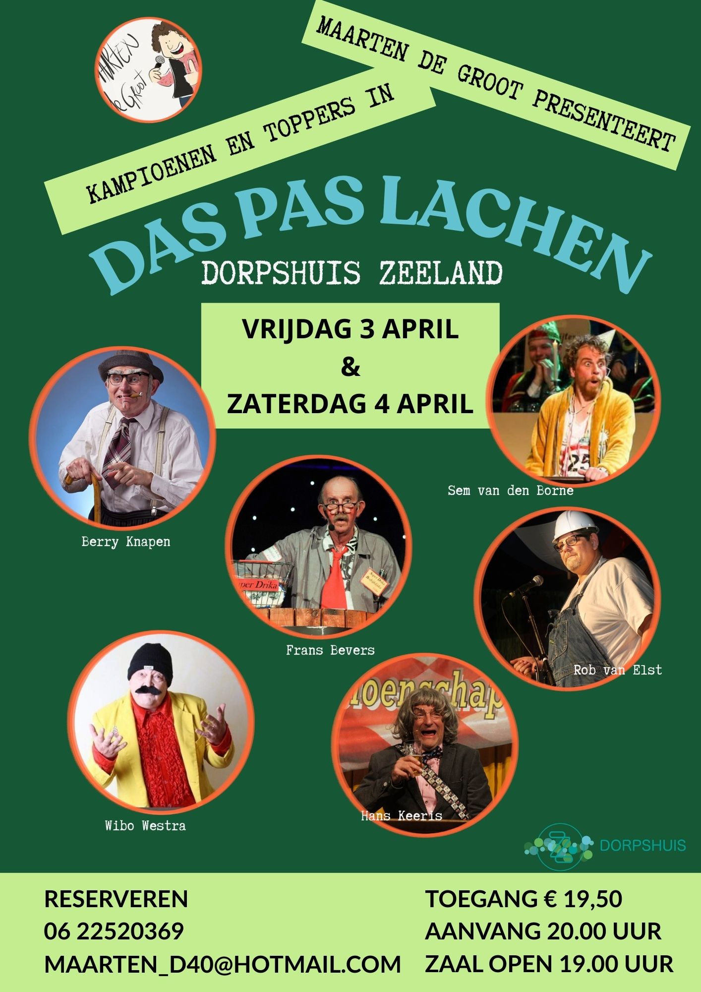 Das Pas Lachen is terug in het dorpshuis van Zeeland! En dit jaar zelfs met 2 avonden, namelijk vrijdag 3 april en zaterdag 4 april 2026. Er staan wederom weer toppers en kampioenen in de ton, namelijk: Berry Knapen, Frans Bevers, Sem van den Borne, Wibo Westra, Hans Keeris en Rob van Elst. Dit wil je meemaken! Bestel je kaartjes via Maarten: 06 – 22 52 03 69.